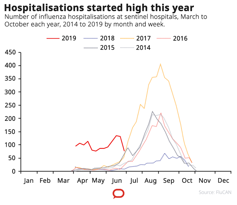 From early this year it’s been apparent the 2019 Australian influenza “season” was going to be different. Normally, the flu season coincides with the winter months of July and August, sometimes stretching to September and October.